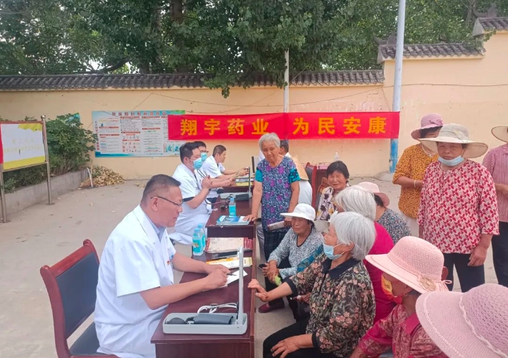 为庆祝中国共产党成立103周年,弘扬伟大建党精神,6月28日,翔宇药业携手沂河新区相公中心卫生院到相公街道洪岭埠村开展“四送四进四提升”健康义诊暨尊老敬老关爱老年人爱心捐赠活动。